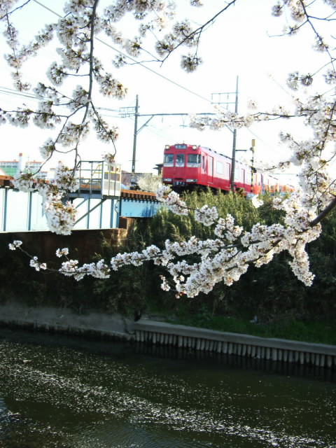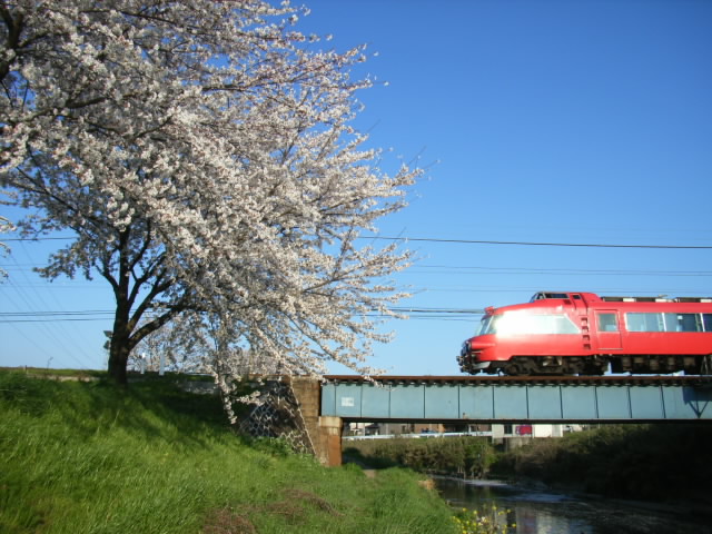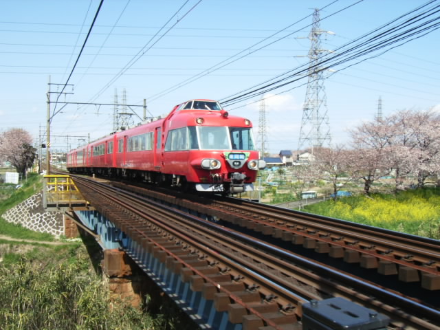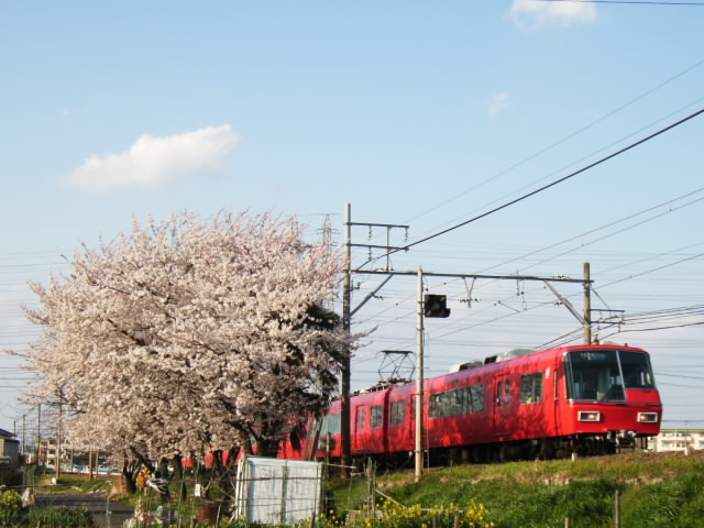 名鉄100系・地下鉄だって桜が見たい(徳重・名古屋芸大〜大山寺間の五条川にて)