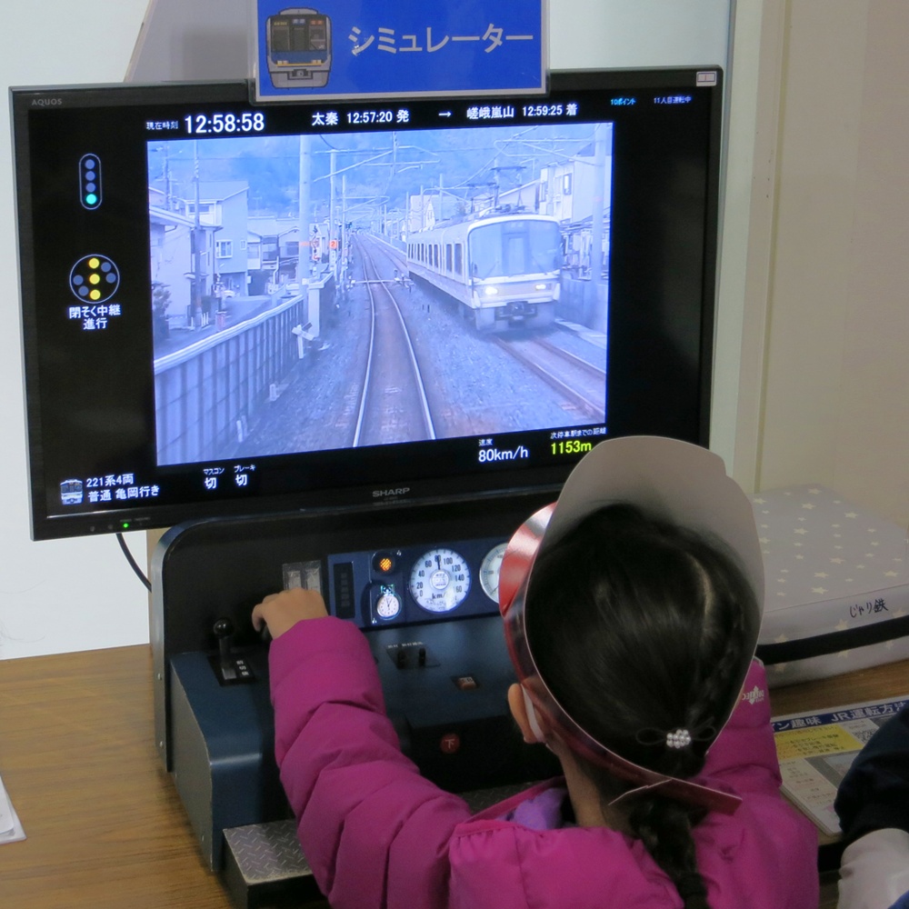 JR嵯峨野線を221系普通・快速で運転できる実写版電車運転ゲーム。